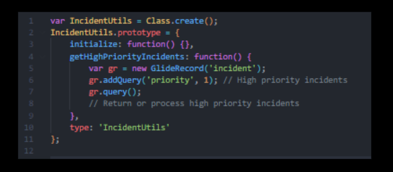 In the given example of ServiceNow Script Includes, each utility function (getHighPriorityIncidents and getEmergencyChanges) declares its own gr variable within its own function scope.
